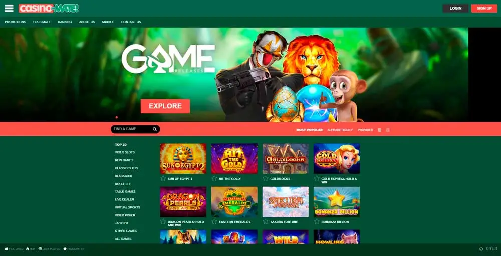 Casino Mate offers a user-friendly interface where you can find a suitable activity for yourself.